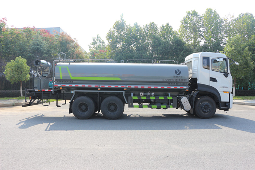 平臺,帶綠化灑水高炮)。四、操作系統(tǒng):主要由發(fā)動機帶動變速箱,變速箱上安裝的取力器帶動灑水泵,灑水泵產(chǎn)生動力,將罐體內(nèi)部 的液體通過管網(wǎng)噴灑出去。工作范圍:自吸高度:≤7m,灑水寬度:≥14m,最大射程:≥28m;可調(diào)節(jié)成柱狀,射程≥28m;也可調(diào)節(jié)成霧狀,射程≥15m。選裝配置:可加裝灑藥盤、藥泵、罐內(nèi)防腐防銹、多方位進出水接頭、電磁閥、氣動閥等先