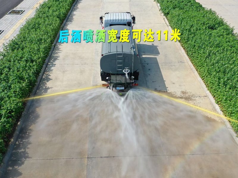 霧炮車專用功能配置:罐體實(shí)際容積約為11-12立方米,公告有效參數(shù)11立方米、采用武鋼優(yōu)質(zhì)碳鋼板卷壓成型。配備專用灑水泵,前噴后灑、左右對(duì)沖、側(cè)噴、后工作平臺(tái)及灑水高壓炮。灑水泵自吸高度為6米左右,整車灑水寬度14米左右,后工作平臺(tái)水炮可調(diào)成:直沖狀、大雨、中雨、霧狀,有效射程≥28米,后主管道帶一個(gè)一寸澆花接口、整車帶接頭、水位計(jì),自流閥及自吸功能。附送2根3米水管,1個(gè)爬梯,兩側(cè)及后保險(xiǎn)杠。
