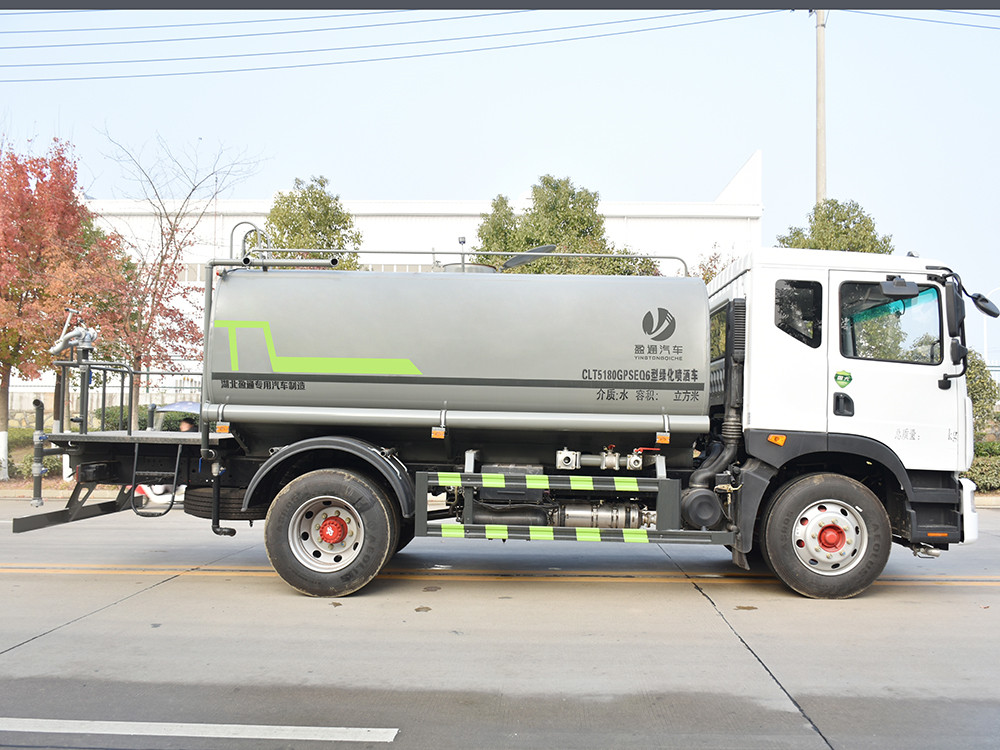 滄州灑水車產品主要技術參數 序號 名稱 型號、規格 1 整車型號 CLT5180GPSEQ6 型綠化噴灑車 2 發動機型號 D4.0NS6B195 3 發動機馬力/功率 康明斯 195 馬力/143KW 4 發動機排量 4000ML 5 變速箱 法士特 8 檔(帶高低檔) 6 輪胎規格 275 真空胎 7 軸距 3950 8 總質量 18000KG 9 整備質量 6480KG 10 額定載質量 11300KG 11 整車尺寸(長×寬×高) 7.75*2.5*3.3 12 罐體容積 12 方 13 燃料種類 柴油 14 排放標準 國六 15 水泵型號 60/90 16 罐體材質 Q235 碳鋼