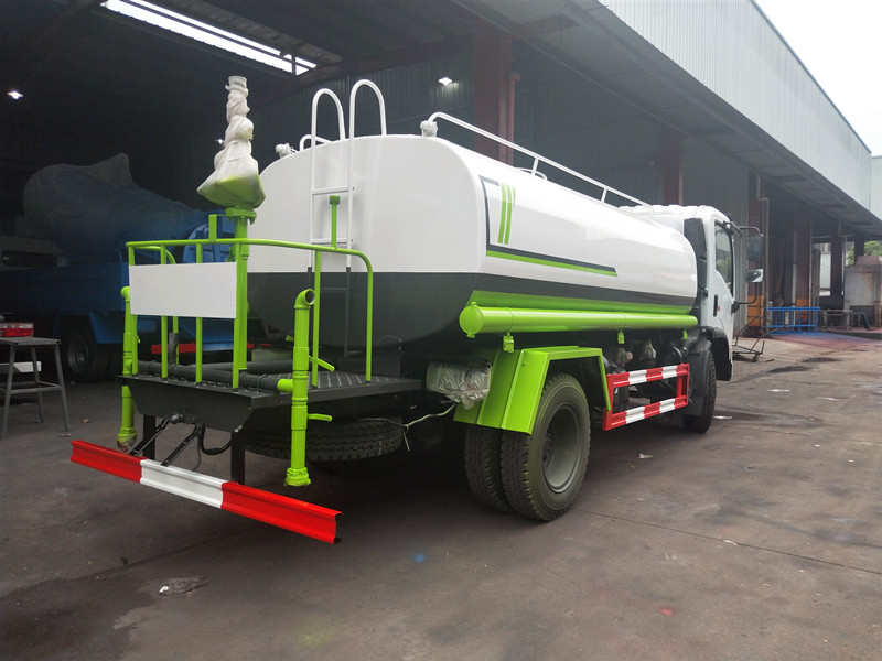 3.福田歐曼灑水車功能簡介:配備65QZ-40/45型大功率灑水車專用水泵,可自吸自排,引水時間<8min,流量40m3/h,揚程45米。其它專用部分標(biāo)配為:前沖、后灑、側(cè)噴、后工作平臺帶360度可調(diào)節(jié)綠化水炮,垂直吸程≧7米,灑水寬度≧14-16米,綠化水炮射程≧20-25米,自流閥、濾網(wǎng)、消防接口(可連接消防栓取水,可作應(yīng)急消防用)。罐前量管(觀察罐內(nèi)水位)、罐后爬梯、罐上罐口帶簡易護欄、罐側(cè)雙炮筒,罐體表面雙層油漆工藝,防銹、耐腐蝕,其余有廠家標(biāo)配。可選擇加裝加裝藥盤、氣動控制閥、噴藥設(shè)備、罐內(nèi)防腐等。