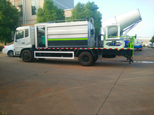 多功能抑塵車最遠噴水距離為20到120余米,單車最大蓄水量近20噸,主要作用是噴霧抑塵,同時具備灑水和道路沖洗功能,有效抑制揚塵的產生。在城市遭遇霧霾天氣、空氣質量PM2.5嚴重超標時,可隨意選定一個區域進行液霧降塵、分解淡化空氣中的顆粒濃度、將飄浮在空氣中的污染顆粒物、塵埃等迅速逼降地面,達到治理凈化空氣的明顯良好效果