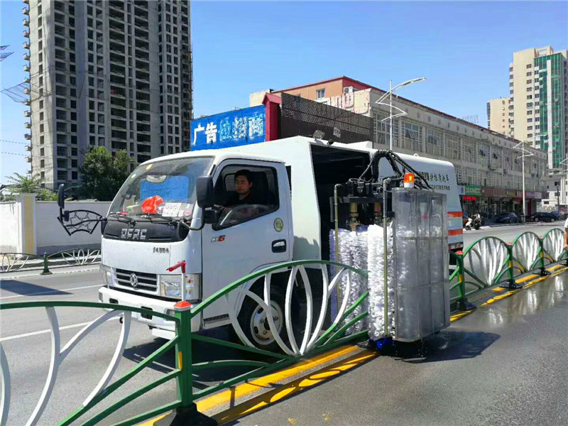 城市道路隔離護欄專用車:是采用毛刷擦洗和高壓水沖洗相結(jié)合的作業(yè)方式,進行清洗城市道路隔離護欄的,中置四根高壓噴桿,噴出水壓高達24兆帕,能輕松解決護欄上面的粘浮垃圾及灰塵泥土,四根立式滾刷(尼農(nóng)條和粘連布組合材質(zhì))夾緊護欄高速轉(zhuǎn)動,將護欄上的頑固污漬、油漬輕松擦除,其中前置兩排高壓噴桿進行第一次高壓沖洗,然后四根立式滾刷進行兩次強力擦洗,最后后置兩根高壓噴桿進行二次沖洗,清洗過后護欄潔凈如新。