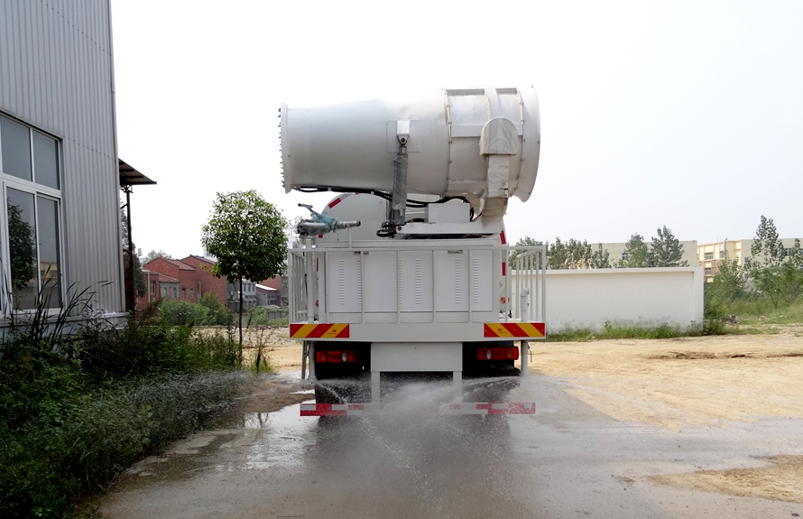 2、噴霧機(霧炮):型號分為:30型、40型、50型、60型、70型、80型、100型、120型、配備霧炮車靈活配備靈活使用。如120型霧炮配置——【風機功率:55KW,15KW離心泵,噴霧流量:50--250L/min,工作壓力:1.5-3.5Mpa,仰俯角度:10-55°,水平旋轉角度±360°130KW濰坊發電機】。,駕駛室內操作,無線遙控操作,及手動操作。霧化距離80米(靜風室內距離),射程(靜風狀態)水平80-100米,實際射程:實際距離100米,(霧化射程會受濕度、溫度、風速等各方面天氣因素的影響,另外天氣干燥地區一部分在空中被蒸發掉
