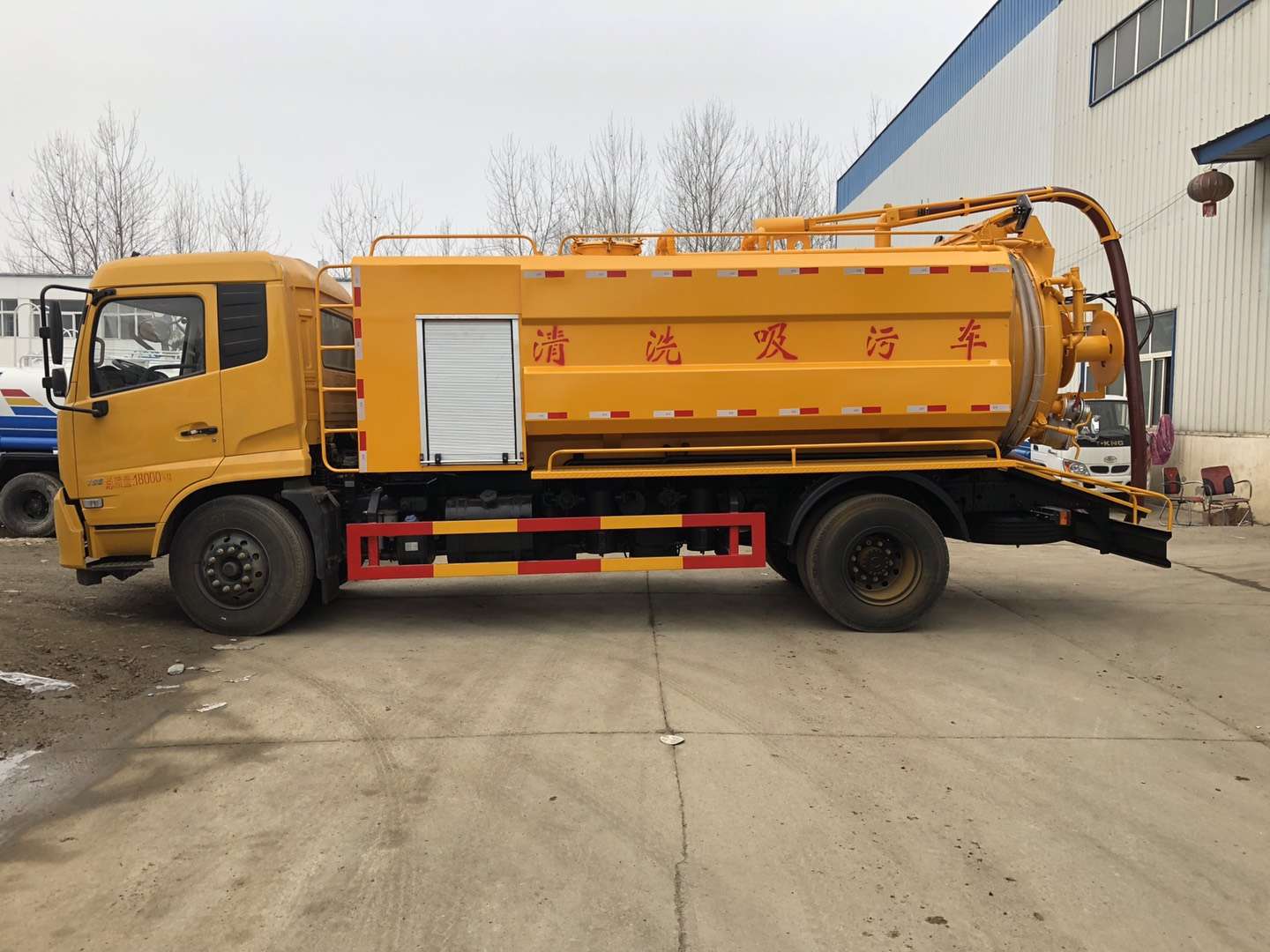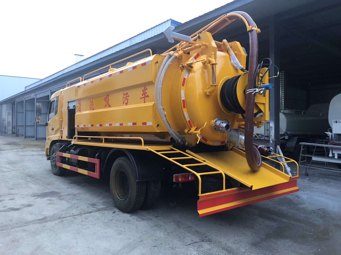 罐體容積9立方,采用武鋼優質鋼板制作(6個厚)采用意大利中冷型真空泵,罐體上部帶液壓吸污吊桿(可360度旋轉,遙控控制)配備一根10米吸污管,尾部一個150排污球閥,帶一個100的自流口,水箱容積4立方,配備德國品孚215L高壓泵,22兆帕,帶60米19號高壓管,帶10個組合噴頭,罐體可以液壓舉升,后大蓋可開啟,帶4個鎖緊裝置,帶箭頭燈,LED夜間作業燈,其他標配。