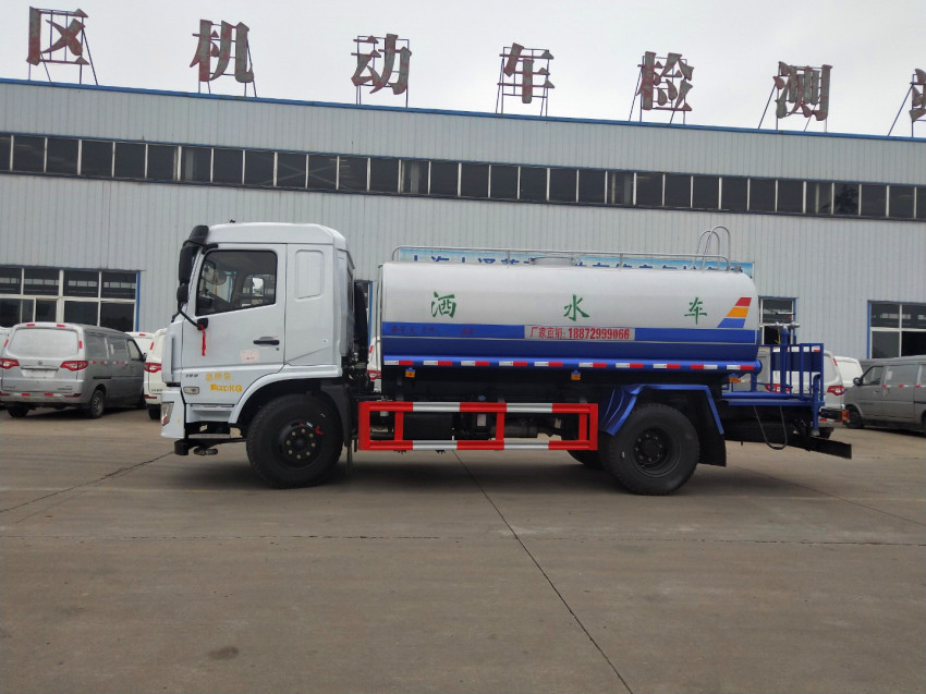 灑水車主要配置: 前沖(噴)、后灑、帶側噴(花灑)、帶后工作平臺、平臺上安裝綠化灑水高炮(炮噴射形狀可調節:直沖、大雨、中雨、毛毛雨、霧狀、可連續調節,360度旋轉),配消防接口,自流閥,濾網,帶自吸自排功能。