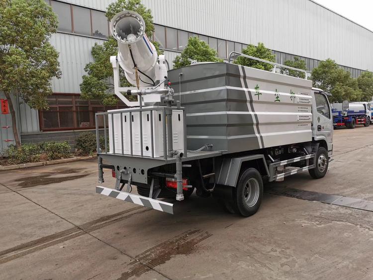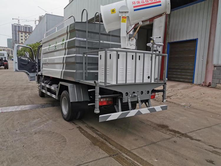 我們從上方抑塵車圖片看出,在底盤下方有前沖功能,在后置平臺有后灑功能和綠化高炮功能,兩輪子中間有側噴功能,這樣抑塵車就具有了灑水車的全部功能,前沖,后灑,側噴,綠化高炮,但是真的只有這些功能嗎?不是還有一項噴霧降塵功能,霧炮機組,這是抑塵車的核心功能。