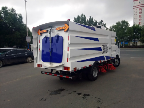 5方掃路車可選裝配置: 1. 可選裝垃圾箱自潔功能。 2. 可選裝倒車監控功能。 3. 可選裝前沖、后灑功能。 4. 前置雪鏟,雪滾。5. 前后噴霧、后置手動吸塵管。