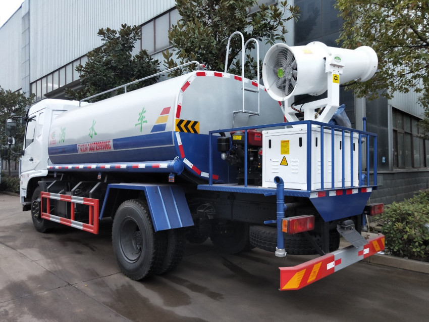 僅采用(mm)3950,4500軸距,整車長/軸距/前懸/后懸對應(mm)關系:7760/3950/1250/2560,抑塵車吸程7米,灑水寬度14-16米,射程25-30米,引水時間<5min,流量60m3/h。前沖()、后灑、帶側噴(花灑)、帶后工作平臺、平臺上安裝綠化灑水高炮(炮噴射形狀可調節:直沖、大雨、中雨、毛毛雨、霧狀、可連續調節,360°旋轉),配消防接口,自流閥,濾網,帶自吸自排功能配備大功率專用灑水泵,泵可自吸自排,安裝過濾網,帶消防接口,可通過消防栓進水,帶自流閥,安裝30型霧泡,車前方加裝灑水自動水泡炮,配8千瓦柴油發電機,霧炮可以遙控操作,可以手動操作