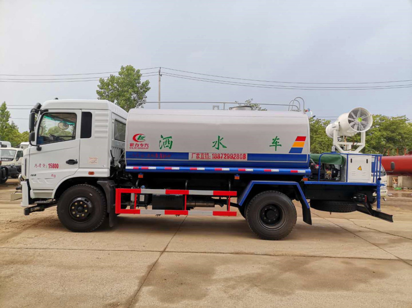 灑水車吸程≧7米,灑水寬度≧14-16米,射程≧25-40米,引水時間<5min,流量60m3/h。前沖(噴)、后灑、帶側噴(花灑)、帶后工作平臺、平臺上安裝綠化灑水高炮(炮噴射形狀可調節:直沖、大雨、中雨、毛毛雨、霧狀、可連續調節,360°旋轉),配消防接口,自流閥,濾網,帶自吸自排功能。配備大功率專用灑水泵,泵可自吸自排,安裝過濾網,帶消防接口,可通過消防栓進水,帶自流閥,此車尾部加裝大功率農藥噴灑炮,