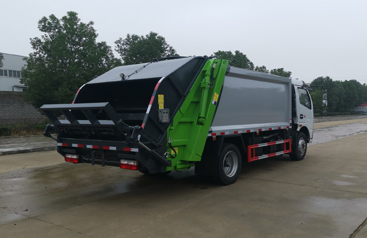 整車為全密封型,采用電液一體化技術(shù),借助機(jī)、電、液聯(lián)合自動(dòng)控制系統(tǒng),通過車廂、填裝器和推鏟等專用裝置,實(shí)現(xiàn)垃圾倒入、壓碎或壓扁、強(qiáng)力裝填,把垃圾擠入車廂并壓實(shí)和推卸。壓縮過程中的污水全部進(jìn)入污水廂,較為徹底的解決了垃圾運(yùn)輸過程中的二次污染的問題。