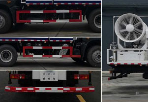 灑水車專用功能:前沖后灑,側噴,高位花灑,罐體后帶工作平臺加護欄,平臺上安裝綠化灑水高炮,射程28米左右,可調節多種形態(大雨、中雨、霧狀),配備大功率專用灑水泵,泵可吸自排,帶自流閥,帶消防接頭,帶過濾裝置,兩根吸水管。