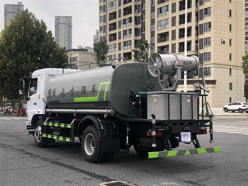 罐體用4 mm武鋼碳鋼板制作,罐體容積12立方,罐內隔板具有防波作用,專用自排自吸灑水泵,前沖,后灑、側噴、后工作平臺、360度可調節綠化水炮,尾部消防自流閥、濾網、消防接口(可連接消防栓取水,可作應急消防用),罐前量管(觀察罐內水位)、罐后爬梯、罐上罐口、帶簡易護欄、抽水管兩根,罐體表面雙層油漆工藝,其它標配。