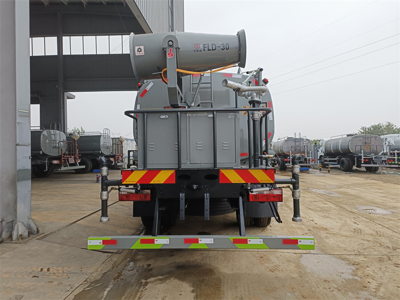 東風(fēng)D9霧炮灑水車整車型號 CLT5160TDYEQ6 型多功能抑塵車 2 發(fā)動機(jī)型號 D4.0NS6B195 3 發(fā)動機(jī)馬力/功率 康明斯 195 馬力/143KW 4 發(fā)動機(jī)排量 4000ML 5 變速箱 法士特 8 檔(帶高低檔) 6 輪胎規(guī)格 275 真空胎 7 軸距 3950 8 總質(zhì)量 16200KG 9 整備質(zhì)量 6750KG 10 額定載質(zhì)量 9255KG 11 整車尺寸(長×寬×高) 7.75*2.5*3.2 12 罐體容積 12 方 13 燃料種類 柴油 14 排放標(biāo)準(zhǔn) 國六 15 水泵型號 60/90 16 罐體材質(zhì) Q235 碳鋼. 灑水車產(chǎn)品功能展示 前沖鴨嘴 后灑 后對沖 高炮 高位花灑 側(cè)噴 霧炮