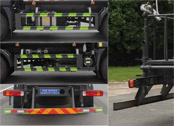 該車主要用于城鄉園林綠化噴灑;主要裝置為罐體及噴灑裝置;罐體總容量:11.66立方米;罐體有效容積:11.1立方米;罐體外形尺寸(長×長軸×短軸)(mm):4200×2300×1450,4000×2300×1540;側、后防護材料均為:Q235碳鋼,連接方式均為:螺栓連接,后部防護截面尺寸(mm):120×50,后部防護離地高度(mm):470;ABS系統型號:ABS-VI.E;生產企業:廣州瑞立科密汽車電子股份有限公司.ABS系統型號:ABS-E;生產企業:威伯科汽車控制系統(中國)有限公司,ABS系統型號:3550D-1010;生產企業:東科克諾爾商用車制動系統(十堰)有限公司.采用3950mm軸距.選裝噴霧裝置樣式.選裝剪頭指示燈裝置,隨底盤選裝限速裝置,限速90km/h.選裝水炮支架位置,選裝后部大平臺,選裝自動球閥安裝位置,選裝自動炮裝置樣式,前伸500mm,整車長度為7950mm,8285mm.選裝無高位花灑裝置.隨底盤選裝尿素罐位置,選裝電瓶位置.