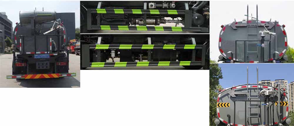 罐體總容量:9.77立方米,罐體有效容積:9.3立方米;罐體外形尺寸(長×長軸×短軸)(mm):4200×2300×1450,4000×2300×1540;ABS型號/生產廠家:3631010-C2000/東科克諾爾商用車制動系統(十堰)有限公司,ABS 8/東科克諾爾商用車制動系統(十堰)有限公司,4460046450/威伯科汽車控制系統(中國)有限公司,J ABS/焦作博瑞克控制技術有限公司.隨底盤選裝駕駛室,選裝底盤附件位置,選裝噴霧裝置樣式;所用材料材質、連接方式以及后部防護裝置的主要尺寸參數(斷面尺寸和離地高度):側、后防護材料均為:Q235碳鋼,連接方式均為:螺栓連接,后部防護截面尺寸(mm):120×50,后部防護離地高度(mm):450;專用功能及裝置:該車主要用于城鄉園林綠化噴灑;主要裝置為水罐及噴灑裝置;選裝油箱和消聲器的安裝位置.選裝儲氣筒位置.選裝后部箭頭燈,選裝水炮支架安裝位置,選裝自動球閥安裝位置,選裝自動炮裝置樣式,前伸500mm,整車長度為8000,8300(mm)。