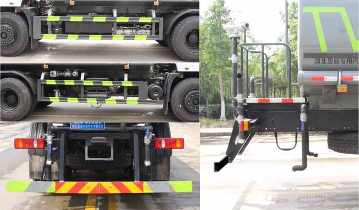 該車主要用于城鄉園林綠化噴灑作業;主要裝置為罐體及噴灑裝置;罐體總容量:14.81立方米;罐體有效容積:14.11立方米;罐體外形尺寸(長×長軸×短軸)(mm):6800×2390×1620.側、后防護材料均為:Q235碳鋼,連接方式均為:螺栓連接,后部防護截面尺寸(mm):120×50,后部防護離地高度(mm):490.ABS生產廠家;東科克諾爾商用車制動系統(十堰)有限公司,浙江萬安科技股份有限公司,型號:3631010-C2000,VIE ABS-Ⅱ.隨底盤選裝駕駛室,選裝噴霧裝置樣式,選裝油箱電瓶安裝位置,選裝擋泥板樣式,選裝弧形噴霧裝置,選裝自動球閥安裝位置,選裝大工作平臺,選裝箭頭燈裝置.選裝前部不帶電子霧炮樣式.選裝電子炮裝置樣式,前部選裝電子霧炮時,前伸為500mm時,整車長度為11150mm,10700mm.僅采用底盤4350+1350軸距(mm)改裝.
