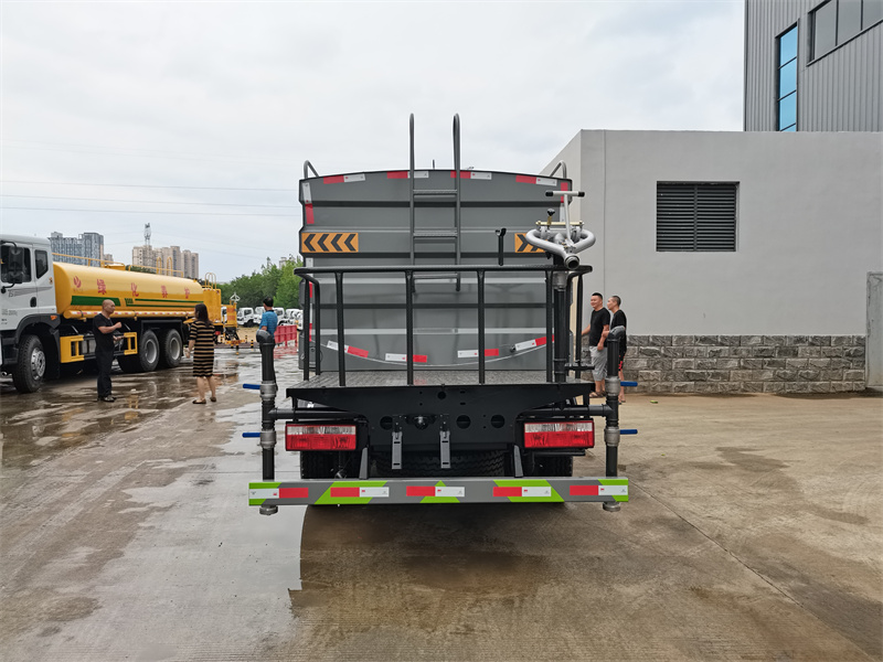 東風(fēng)7方霧炮灑水車產(chǎn)品配置 1.底盤配置: 發(fā)動(dòng)機(jī)玉柴 140 馬力,萬里揚(yáng) 6 檔變速箱,2T 前橋,3.5T 后橋,7.00 鋼絲胎, 軸距 3308,氣剎,ABS,空調(diào),電動(dòng)門窗,中控鎖,雙層大梁 。 2.上裝配置: 1、罐體約為 7 方 2、邊燈帶電,罐體尾部上方標(biāo)配 2 個(gè)紅色示寬燈 3、標(biāo)配前噴為鴨嘴直沖,標(biāo)配后對(duì)沖,可根據(jù)需求來調(diào)整對(duì)沖位置 4、花紋防滑平臺(tái),炮筒后蓋為定制型螺栓卡扣 5、前噴、后對(duì)沖、后灑、側(cè)噴,綠化高炮球閥均采用 50 大通徑不銹鋼球閥 6、新式軸承式水炮,更加耐用 7、40-50 型水泵 8、防腐法蘭墊片 9、鋁制后灑,不易炸開 10、罐體自動(dòng)焊(美國林肯焊機(jī)及電源),拼板自動(dòng)焊接,封頭環(huán)縫焊接, 無氣孔,焊縫美觀 11、側(cè)護(hù)網(wǎng)、后保險(xiǎn)杠、均為螺栓連接方便拆卸維修方便。 12、塑料擋泥板,替代鐵擋泥板,更加輕便,用螺栓連接,方便拆卸。 13、前部、后部主管連接處為 6 孔圓法蘭不易沖墊