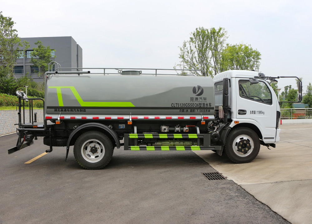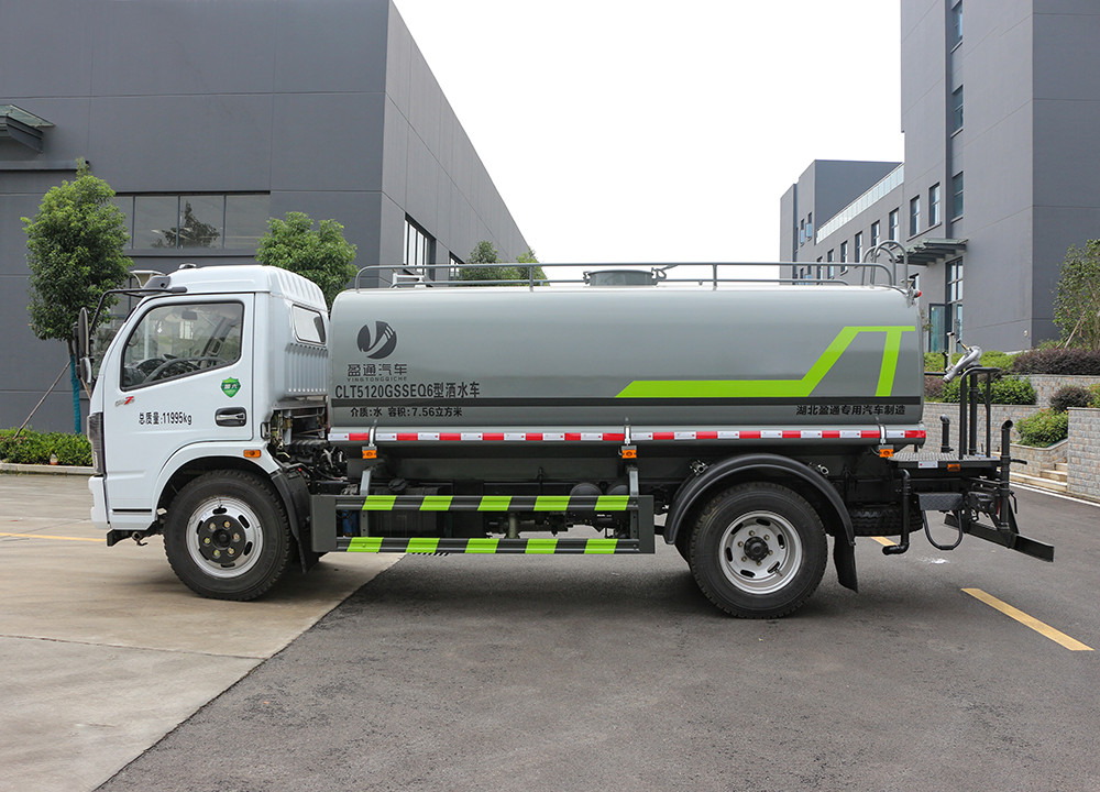 東風福瑞卡 9.3 方灑水車技術參數 序號 名稱 型號、規格 1 整車型號 CLT5120GSSEQ6 型灑水車 2 發動機型號 D30TCIF1 3 發動機馬力/功率 云內 170 馬力/125KW 4 發動機排量 2977ML 5 變速箱 法士特 8 檔 6 輪胎規格 8.25 鋼絲胎 7 軸距 3800 8 總質量 11995KG 9 整備質量 4600KG 10 額定載質量 7200KG 11 整車尺寸(長×寬×高) 7.1*2.25*2.8 12 罐體容積 9.3 方 13 燃料種類 柴油 14 排放標準 國六 15 水泵型號 40/50 16 罐體材質 Q235 碳鋼