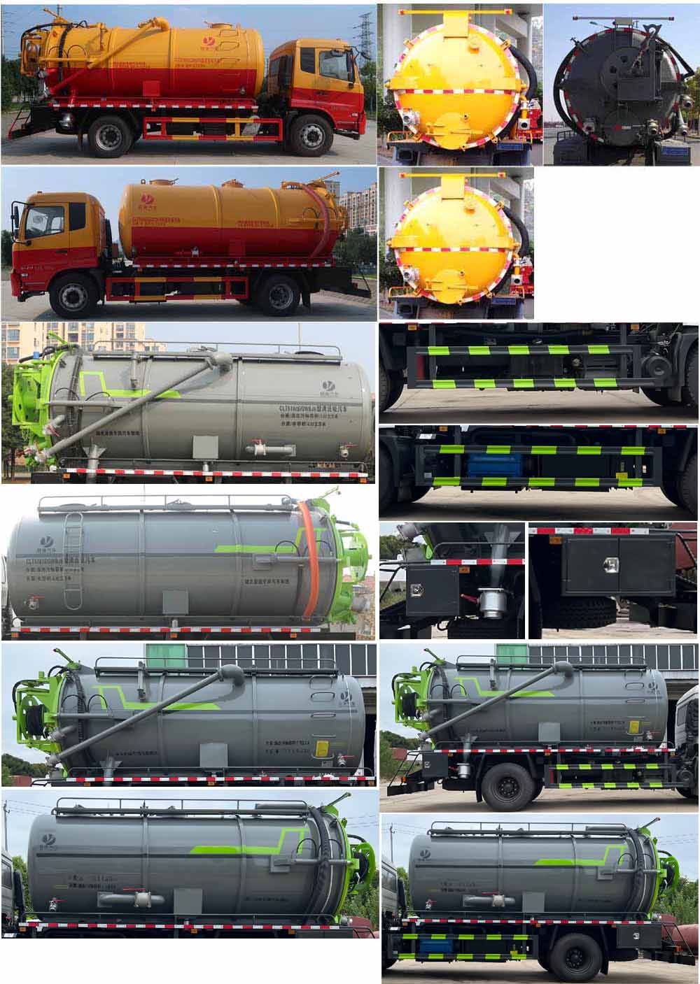 備注 | ABS型號/生產(chǎn)廠家:3631010-C2000/東科克諾爾商用車制動系統(tǒng)(十堰)有限公司,ABS 8/東科克諾爾商用車制動系統(tǒng)(十堰)有限公司, 4460046450/威伯科汽車控制系統(tǒng)(中國)有限公司,J ABS/焦作博瑞克控制技術有限公司;隨底盤選裝駕駛室,選裝后部樣式,選裝罐體左右樣式;側、后防護材料均為:Q235碳鋼,連接方式均為:螺栓連接,后部防護截面尺寸(mm):200×50,后部防護離地高度(mm):450;罐體尺寸為(直段長×直徑)(mm):5000×1950(前部1800mm為清水罐,后部3200mm為污水罐);污水罐總容量:8.14立方米,污水罐有效容積:7.75立方米,介質:液態(tài)污物,清水罐總容量:5.36立方米,清水罐有效容積:5.3立方米,介質:水;專用功能及裝置:該車主要用于下水道系統(tǒng)的清理和疏通工作;主要裝置為貯污罐及清洗吸污裝置;其他說明:兩罐獨立,且不能同時滿載,清洗功能時用清水罐,吸污功能時用污水罐;選裝限速裝置,限速89.選裝油箱,電瓶安裝位置。選裝罐體頂部左右護欄樣式。選裝工具箱位置。 | ||