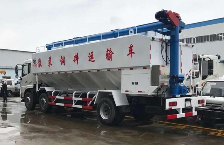 程力專(zhuān)用汽車(chē)股份有限公司生產(chǎn)的散裝飼料運(yùn)輸車(chē)主要用于從飼料廠向畜牧場(chǎng)養(yǎng)禽場(chǎng)及飼料加工用戶(hù)運(yùn)輸散裝飼料,同時(shí)它也可用來(lái)運(yùn)輸某些無(wú)腐蝕性粉粒狀原料,如制藥廠粉料和糧庫(kù)周轉(zhuǎn)。