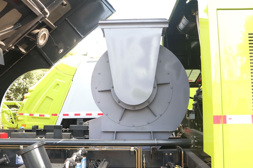 九、東風天錦洗掃車的污水箱內采用大平面斜坡結構,最大卸料角度可達50度,更易于傾倒垃圾。污水箱內設置了防溢滿報警裝置和高壓噴淋清洗裝置,防溢滿報警裝置可防止污水作業時從吸管溢出,造成二次污染;高壓噴淋清洗裝置在傾倒垃圾后可對污水箱進行自動清洗,大大減輕了操作人員的勞動強度。