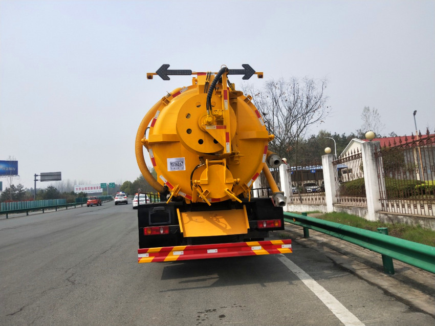 吸污車專用部分由取力器、傳動軸、真空吸污泵、壓力罐體、液壓部分,管網系統、真空壓力表、視糞窗、洗手裝置等組成,隨車配置大功率真空吸污泵和優質液壓系統,罐體封頭一次壓鑄成型、罐體可后開、雙頂自卸。罐內污物可通過后蓋直接傾倒,具有真空度高(比吸糞車的吸力更大)、噸位大、效率高、用途更廣泛的特點