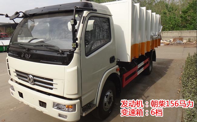 東風(fēng)多利卡D7對接式垃圾車,D7單排駕駛室,朝柴156馬力發(fā)動機,6檔變速箱,.2噸后橋,7.50R16鋼絲胎,氣剎,帶ABS,方向助力。
