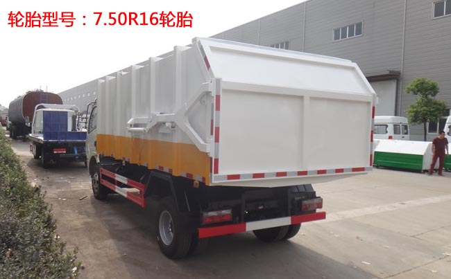 容積7~8立方米,方形密封式箱體,材質(zhì)邊三底四,國產(chǎn)油泵、多路閥、取力器、液壓油缸,駕駛室外部操作,箱體底部雙杠液壓舉升卸料,箱體后門液壓開啟。