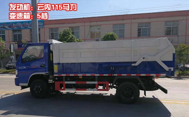 時風(fēng)藍牌對接式垃圾車,時風(fēng)風(fēng)順純工程車底盤,云內(nèi)115馬力發(fā)動機,5檔帶副變速箱,軸距3280mm,雙層大梁,7.00R16輪胎,帶方向助力,ABS。