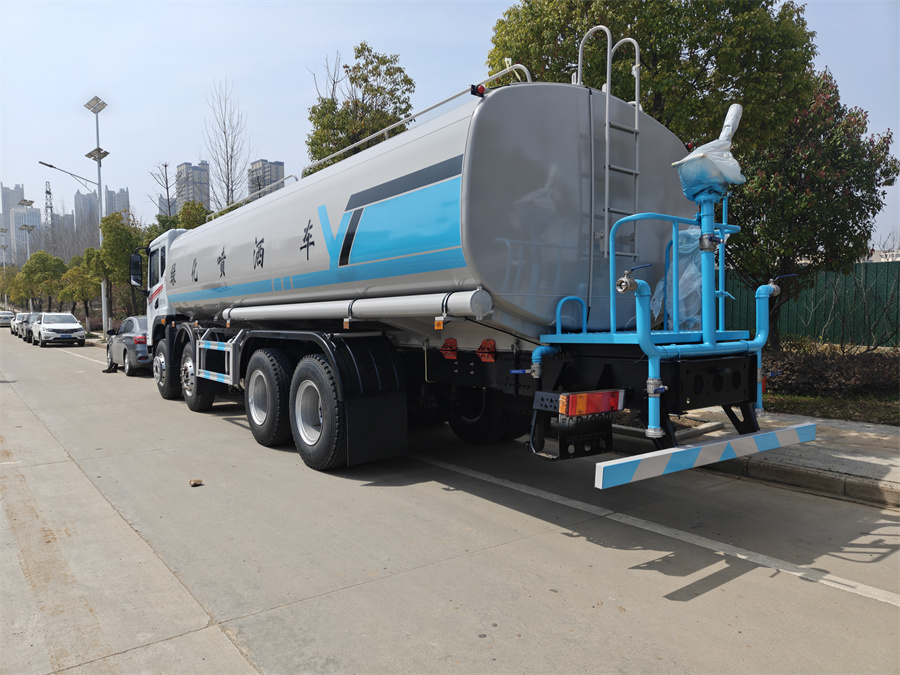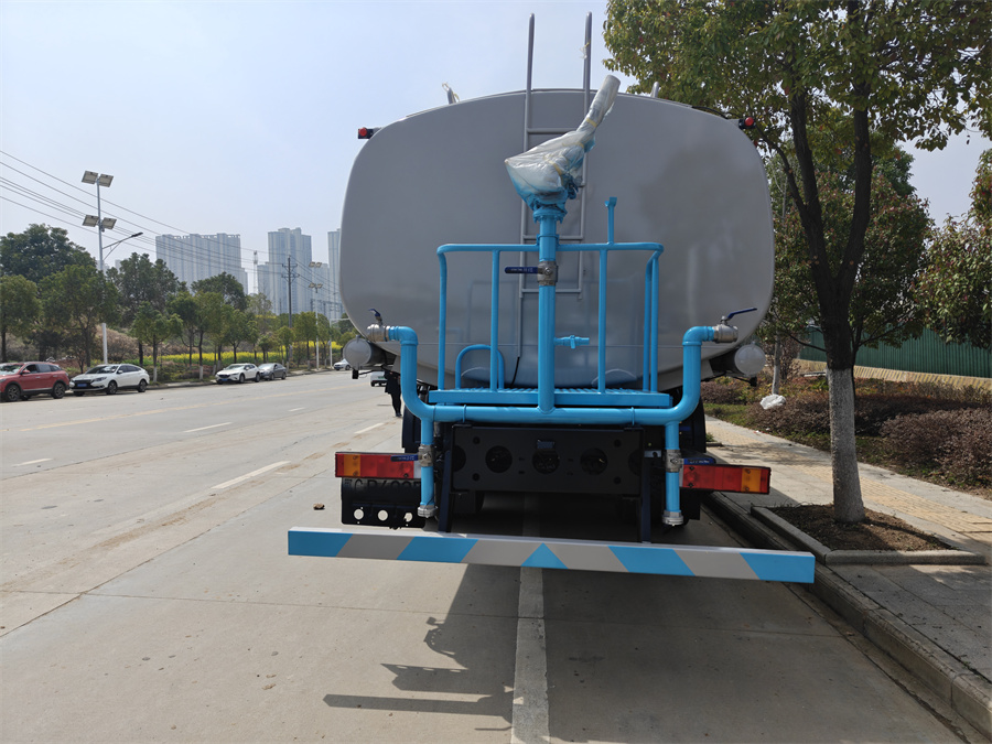 產品簡述:縱昂牌 CLT5310GPSEQ6A 型綠化噴灑車標配前噴(鴨嘴)、后對沖、 后灑、側噴、后置式工作平臺,平臺上配置綠化水炮(可 360°旋轉,既可以調 成柱狀,也可以調成霧狀),配備優質大功率專用灑水泵(可自吸自排,可從河 里或池塘抽水到罐體),取力器,雜物過濾網,消防接口,自流球閥系統、取力 器、球閥、濾網均為國家標準產品,主管道加粗,法蘭墊、法蘭盤加厚,大通徑 球閥。整體具備性能優良安全可靠、效率高、流量大、維修方便等特點。(標配不含電子炮)