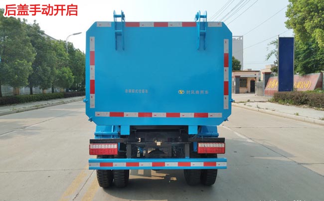 容積3~4立方米,標配全國知名油缸,淮安多路閥,駕駛室外部手動操作,鐵通掛架;后門鎖緊為機械鎖緊,手動開啟;相同結構為槍版形式,碳鋼材料,箱體邊三底四。雙頂自卸,可裝240升拉圾桶50個,環保齊全,不超重,好上戶。