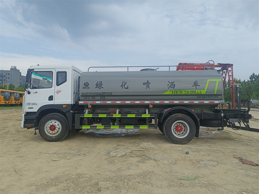 綠化噴灑車標配前噴(鴨嘴)、后對沖、 后灑、側噴、后置式工作平臺,平臺上配置綠化水炮(可 360°旋轉,既可以調 成柱狀,也可以調成霧狀),配備優(yōu)質大功率專用灑水泵(可自吸自排,可從河 里或池塘抽水到罐體),取力器,雜物過濾網,消防接口,自流球閥系統、取力 器、球閥、濾網均為國家標準產品,主管道加粗,法蘭墊、法蘭盤加厚,大通徑 球閥。整體具備性能優(yōu)良安全可靠、效率高、流量大、維修方便等特點