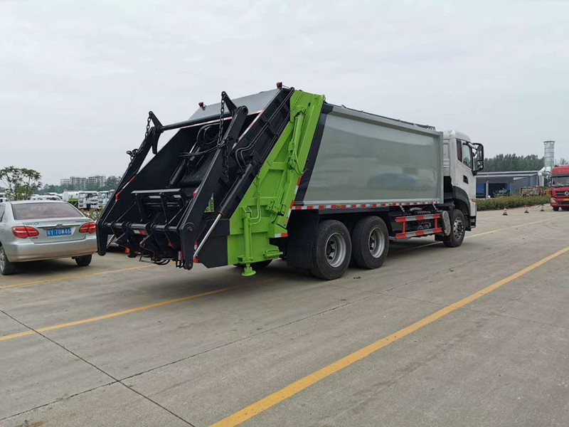 上裝配置:弧形箱體,容積18立方,可裝垃圾16噸,采用特種鋼板制作,箱體底板5mm,邊板5mm,博利油缸,中梅多路閥,長源液壓油泵,填裝器舉升油缸帶液壓鎖裝置,采用進口西門子PLC電控系統(帶一鍵操作,和手動操作兩種控制方式),電控操作盒三只。帶2個污水收集箱,尾部帶橡膠密封條。填充器加裝后照明燈,箱體油漆及噴字按用戶要求定制。