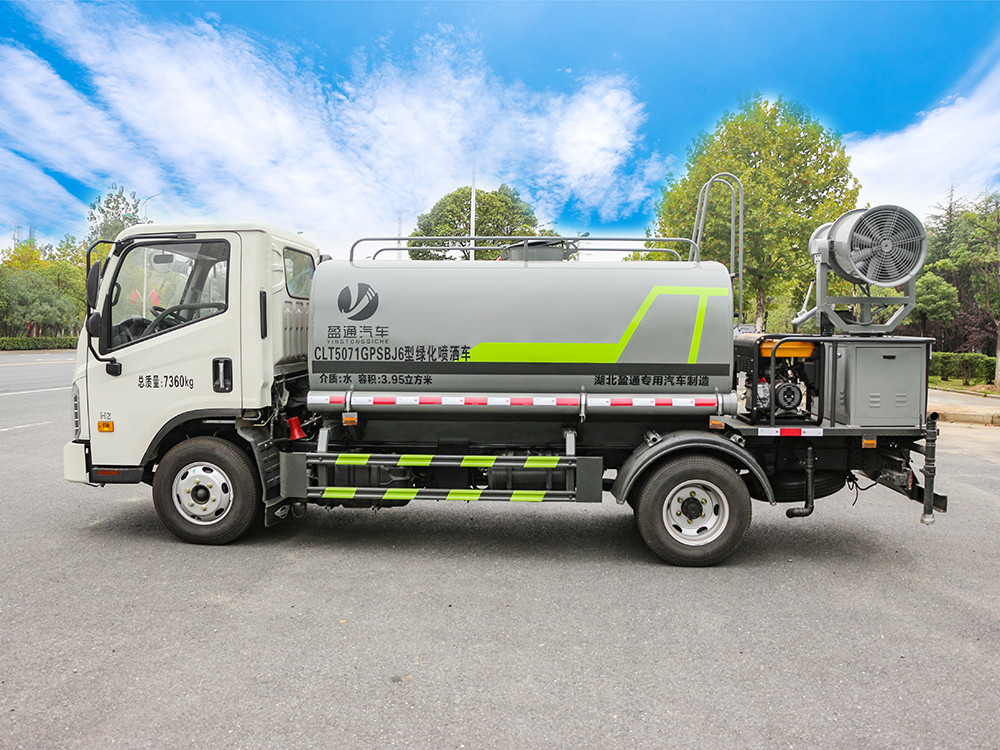 福田5方藍(lán)牌灑水車產(chǎn)品標(biāo)配前噴(鴨嘴)、后沖、后灑、側(cè)噴、后置式工作 平臺(tái),平臺(tái)上配置綠化水炮(可 360°旋轉(zhuǎn),既可以調(diào)成柱狀,也可 以調(diào)成霧狀,更可以調(diào)成直沖狀、大雨、中雨、小雨、毛毛雨),配 備優(yōu)質(zhì)大功率專用灑水泵(可自吸自排,可從河里或池塘抽水到罐體), 取力器,雜物過濾網(wǎng),消防接口,自流球閥系統(tǒng)、取力器、球閥、濾網(wǎng) 均為國(guó)家標(biāo)準(zhǔn)產(chǎn)品,主管道加粗,法蘭墊、法蘭盤加厚,大通徑球閥。 整體具備性能優(yōu)良安全可靠、效率高、流量大、維修方便等特點(diǎn)
