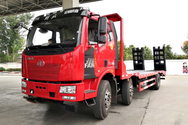 | 其他 | 解放前四后四平板運輸車采用J6L半浮平頂小排半駕駛室、自動空調(diào)、電動玻璃升降、手動后視鏡、駕駛員座椅為機械減振座椅、單DIN北斗兼容車載系統(tǒng)、車橋1928前軸,車橋Ф435沖焊橋(國產(chǎn)ABS),速比4.875,270×75×(7+5)mm車架,11.00R20型18層級,前下防護(hù)裝置、鐵保險杠、電動液壓舉升裝置、駕駛室抬高方案、300L鋼油箱、發(fā)動機體5萬公里長換油周期、防飛濺擋泥板、電調(diào)大燈。 | ||