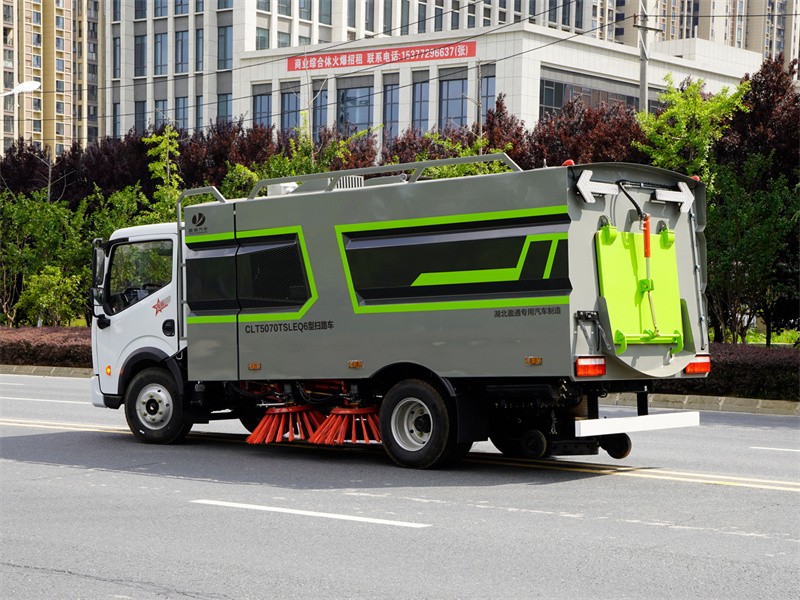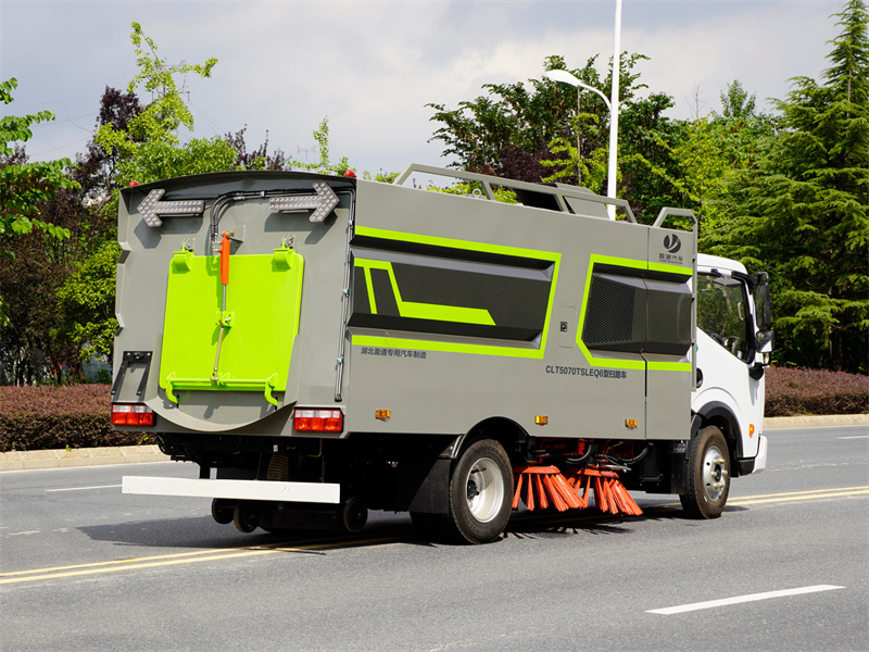 1. 采用吸掃混合的方式收集垃圾,濕式除塵、電液控制,液壓傾翻卸料的作業方式對路面進行清掃作業。