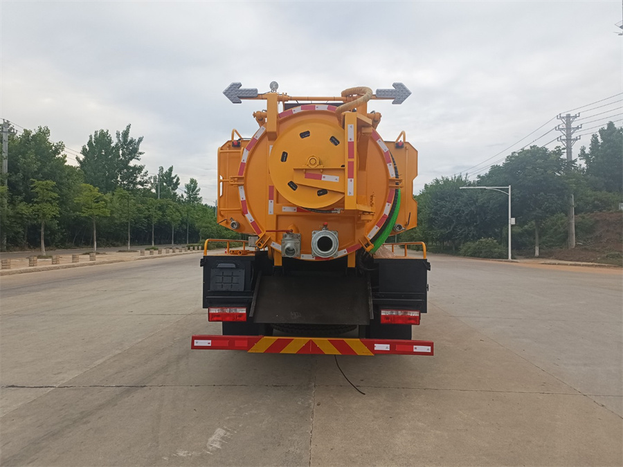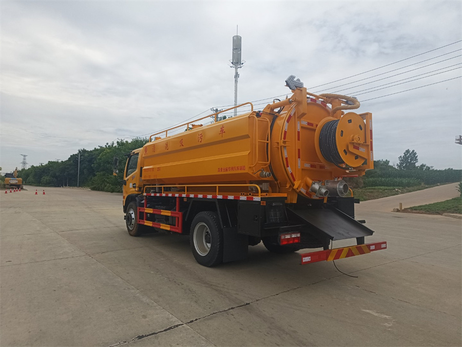 東風12方清洗吸污車上裝配置:罐體采用優質碳鋼板制作,雙耀215L流量高壓泵,SK-12型水循環泵,配100米19mm高壓管,兩根8米吸污管。,帶氣吹水,水污互通,罐體后吸污口為DN100球閥,排污口為DN150孔徑球閥,罐體后蓋可液壓打開,罐體可液壓舉升。清水罐4方,污水罐8.5方