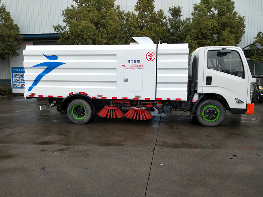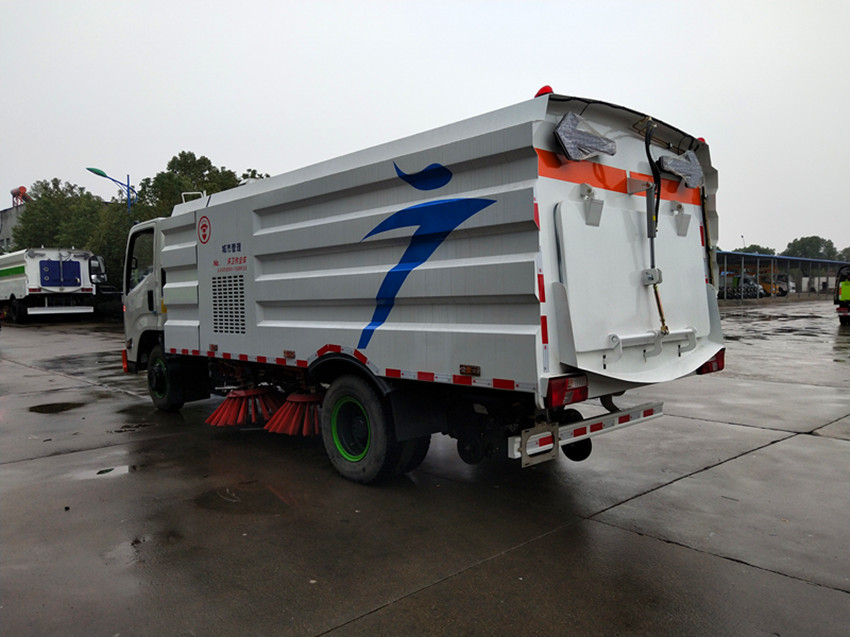 江鈴掃路車隨底盤選裝前面罩,前保險杠,前組合燈具;防護材料:Q235A碳鋼,左右側面防護裝置與專用裝置相干涉,故豁免;后下部防護與車架采用螺栓連接,后部防護斷面尺寸(mm):100×50,后部防護離地高度(mm):410。選裝寬吸盤、兩掃盤結構;ABS系統型號:VIE ABS-II,ABS系統生產廠家:上海萬捷汽車控制系統有限公司。