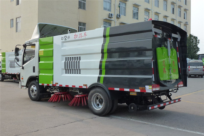 1.5立方水箱、4立方不銹鋼垃圾箱;中置4掃盤、后置吸盤、三洋馬達、江鈴五十鈴副發動機、施耐德控制開關、海普瑞思電磁閥組、無極變速自動離合器、免維護離心式風機、不銹鋼垃圾箱、北極星電子水泵、垃圾箱舉升自卸、尾部LED箭頭燈、手動泵應急系統?蛇x裝前沖后灑、垃圾箱自潔功能、倒車影像作業監控、前置雪鏟、掃雪滾。