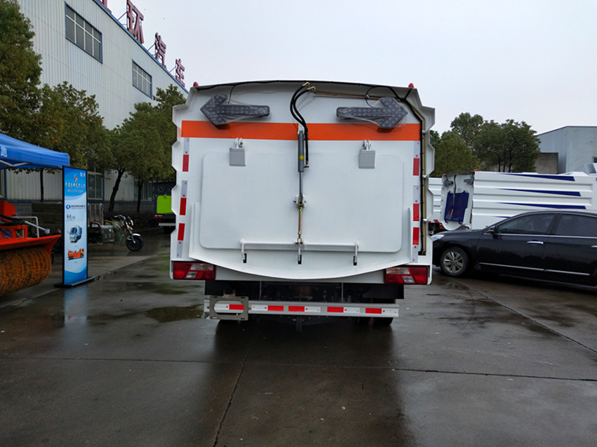 1、掃路車采用吸掃結(jié)合的方式收集垃圾,濕式除塵、電液控制,液壓傾翻卸料的作業(yè)方式對路面進(jìn)行清掃作業(yè)。