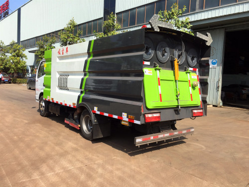 吸塵車整車配有三層過濾系統:一層箱體內部采用分段式垃圾倉,垃圾由吸盤進入垃圾箱內先將垃圾分為固體垃圾與灰塵。二層垃圾箱內部濾桶與垃圾倉上裝有隔離板,減少濾桶與灰塵之間互竄。三層濾桶選用進口覆膜材質濾桶,徹底解決吐灰問題。自帶后噴霧,垃圾箱卸料噴霧降塵裝置,可有效抑制灰塵。后門手持吸管及手持吸盤快速接頭。