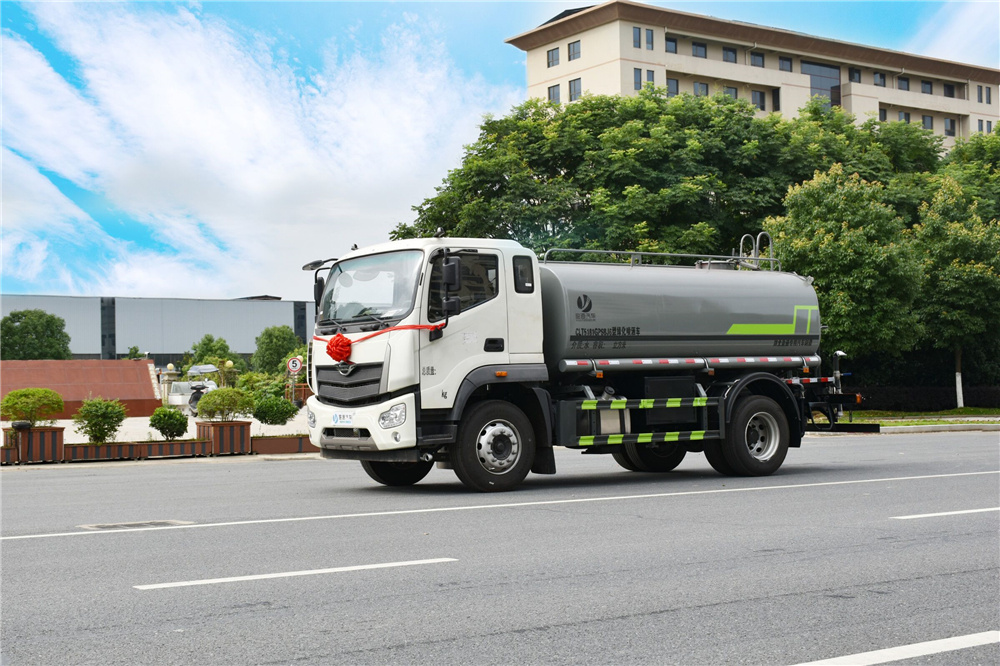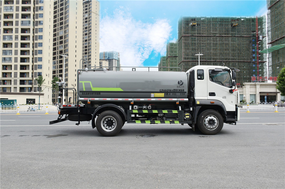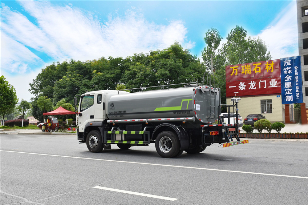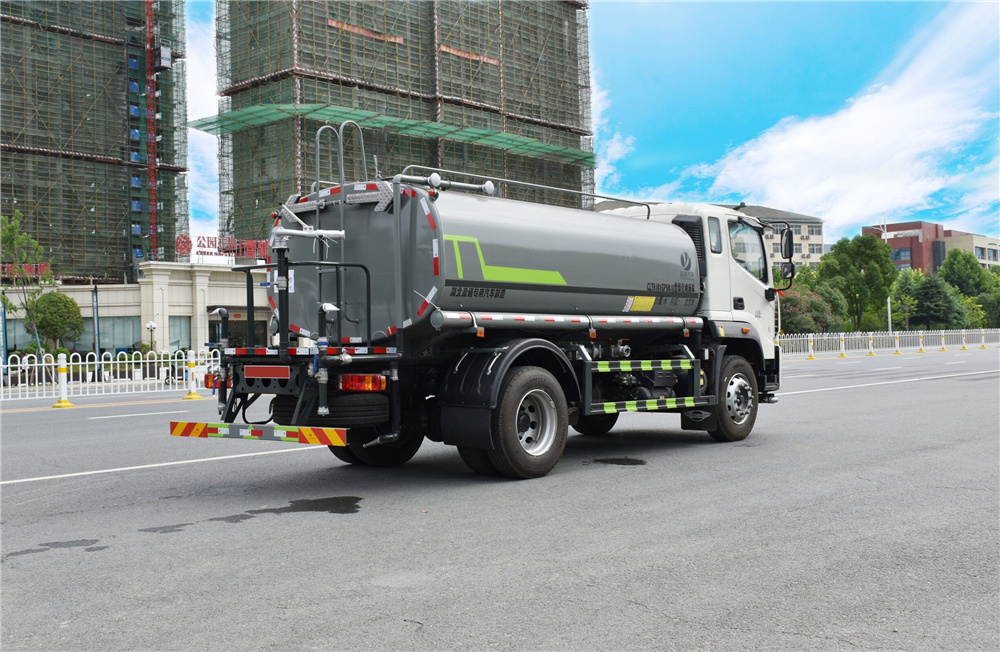 專用功能配置:罐體實際容積約為12-14立方米,公告有效參數(shù)11.56立方米、采用武鋼優(yōu)質碳鋼板卷壓成型。配備專用灑水泵,自吸自排,前噴后灑、側噴、后工作平臺及灑水高壓炮。灑水泵自吸高度為6米左右,整車灑水寬度14米左右,后工作平臺水炮可調成:直沖狀、大雨、中雨、小雨、毛毛雨,有效射程≥28米,整車帶接頭、水位計,自流閥。后工作平臺主管路帶1寸澆花接口,附送2根3米水管,1個爬梯,兩側及后保險杠。