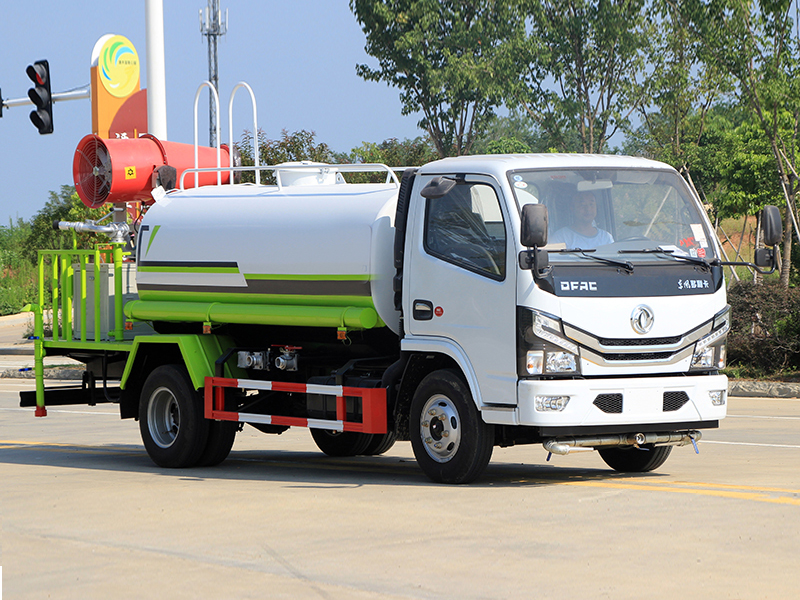 上裝配置:罐體容積5立方,前(噴)后灑,帶側噴,罐體后帶工作平臺,平臺上安裝綠化灑水炮,灑水炮可全方位旋轉,可連續調成直沖狀、大雨、小雨、毛毛雨,帶安全護欄,配大功率專用灑水泵,泵可自吸自排,安裝過濾網,帶消防接口,可通過消防栓進水,帶自流閥。選裝30-50米射程霧炮。