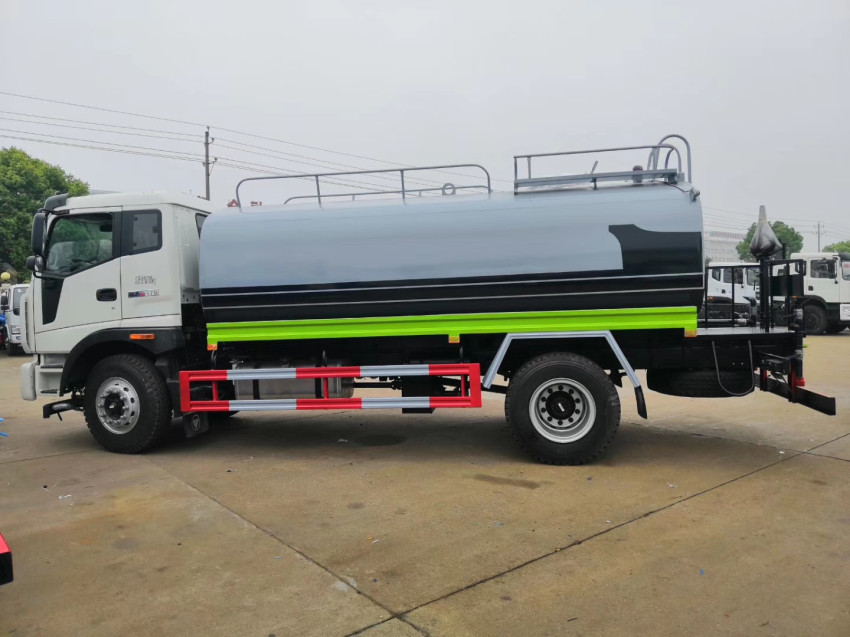 福田瑞沃灑水車15噸灑水車改裝配置:罐體用4MM碳鋼板制作,罐內(nèi)隔板具有防波作用,以減低汽車行駛時罐體液體的沖擊。整車帶一個專用灑水泵(垂直最大吸程6米),灑水寬度 14米,射程28米。多功能灑水車配備2個前沖(噴)(能將路面泥巴、塵土、垃圾沖干凈);2個后灑(能均勻地將水灑在路面,一次灑水寬度14米)、2個側(cè)噴 (花灑)(能均勻地將路旁綠化帶澆灌)、帶1個后工作平臺,平臺上安裝1個綠化灑水高炮(灑水炮可全方位旋轉(zhuǎn),可連續(xù)調(diào)成直沖狀、大雨、小雨、毛毛 雨,霧狀可調(diào)節(jié)沖洗高大樹木),引水時間<5min,流量90m3/h。帶1個消防接頭,帶1個自流閥,1個過濾裝置、人性化爬梯及側(cè)防護(hù)欄,安裝灑水音樂喇 叭。