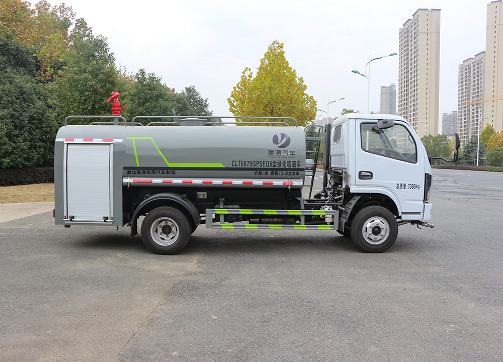 東風5方灑水車產品主要技術參數 序號 名稱 型號、規格 1 整車型號 CLT5071GSSEQ6 型灑水車 2 發動機型號 D20TCIF1 3 發動機馬力/功率 云內 126 馬力/93KW 4 發動機排量 1999ML 5 變速箱 萬里揚 5 檔 6 輪胎規格 7.00 鋼絲胎 7 軸距 3308 8 總質量 7360KG 9 整備質量 3220KG 10 額定載質量 4010KG 11 整車尺寸(長×寬×高) 6.15*1.99*2.4 12 罐體容積 5 方 13 燃料種類 柴油 14 排放標準 國六 15 水泵型號 40/50 16 罐體材質 Q235 碳鋼
