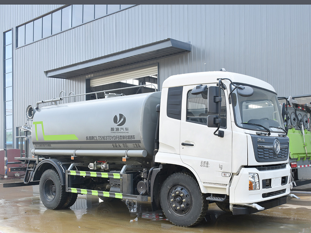 東風天錦 12 方抑塵車-灑水車產品主要技術參數 序號 名稱 型號、規格 1 整車型號 CLT5180TDYDF6 型多功能抑塵車 2 發動機型號 B6.2NS6B210 3 發動機馬力/功率 康明斯 210 馬力/154KW 4 發動機排量 6200ML 5 變速箱 東風 6 檔 6 輪胎規格 10.00 鋼絲胎 7 軸距 4700 8 總質量 18000KG 9 整備質量 8000KG 10 額定載質量 9805KG 11 整車尺寸(長×寬×高) 8.6*2.5*3.2 12 罐體容積 12 方 13 燃料種類 柴油 14 排放標準 國六 15 水泵型號 60/90 16 罐體材質 Q235 碳鋼