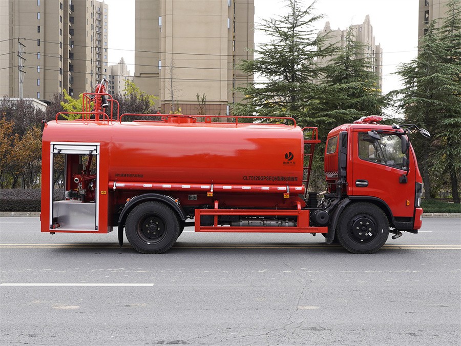 消防灑水車,又稱消防灑水兩用車、灑水消防兩用車、森林消防灑水車、學校消防灑水車、機 場消防灑水車、社區消防灑水、街道及鄉鎮和鄉村消防灑水功能。是一款集消防車和灑水車于一體的 兩用車,是介于消防車與灑水車之間,具有消防灑水一體化用途,與消防車相比雖缺少器材箱,但與 消防車的射程相同,具有同樣的消防功能。 功能介紹:與灑水車相比,繼承了灑水車的全部功能,同時也彌補了灑水車射程小,壓力小等 問題。消防灑水車除了裝備消防水泵及器材以外,還設有較大容量的貯水罐及水槍、水炮等。可將水 和消防人員輸送至火場獨立進行撲救火災。它也可以從水源吸水直接進行撲救,或向其他消防車和滅 火噴射裝置供水。優于消防車的功能:因為沒有消防車器材箱,底盤高度及車輛寬度更適應山間、鄉 鎮、鄉村的路況,是森林消防、鄉鎮和鄉村消防的有利消防工具。