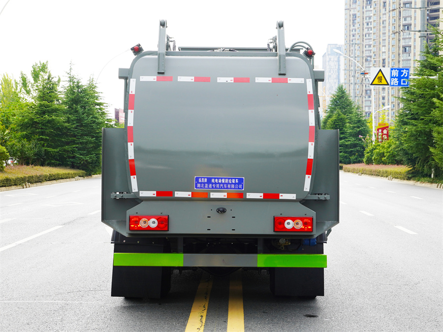 電動餐廚垃圾車該車用于餐廚垃圾收集清運,主要專用裝置為垃圾收集箱和提升機構;側防護材料為:鋁合金+Q235碳鋼,側防護連接方式為:螺栓+焊接連接,后防護材料均為:Q235碳鋼,后防護連接方式為:焊接連接,后部防護截面尺寸(mm):120×50,后部防護離地高度(mm):480;ABS型號/生產企業:ABS-VI.E/廣州瑞立科密汽車電子股份有限公司;電池種類/單體生產企業/總成生產企業:磷酸鐵鋰電池/寧德時代新能源科技股份有限公司/寧德時代新能源科技股份有限公司;電機型號/生產企業:FTTB080C/北汽福田汽車股份有限公司,額定功率:80kW,峰值功率:160kW.僅采用底盤3360mm軸距改裝.隨底盤選裝二級踏步.