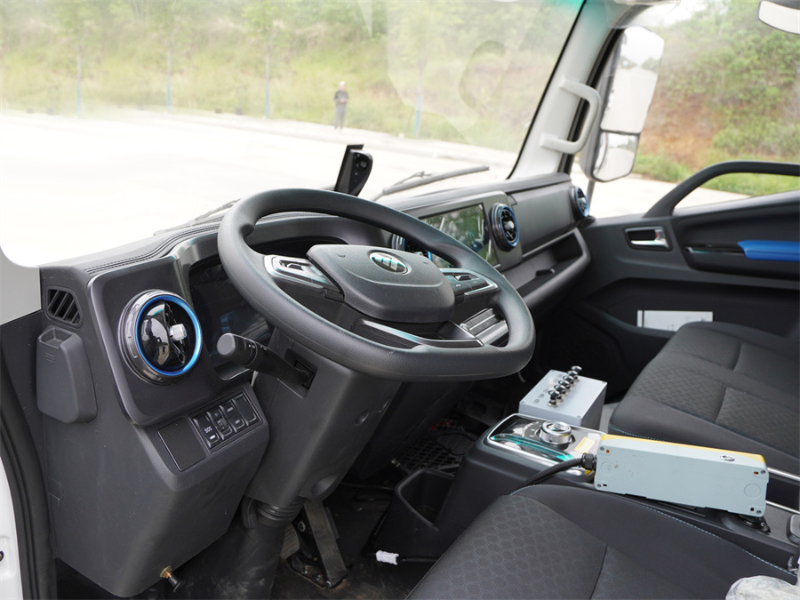 福田8噸新能源電動灑水車該車主要用于城鄉園林綠化,路面噴灑;主要裝置為罐體及噴灑裝置;罐體總容量:6.57立方米;罐體有效容積6.2立方米;介質:丙酮水溶液,密度950千克/立方米,罐體外形尺寸(長×長軸×短軸)(mm):3800×2000×1250;側防護材料為鋁合金+Q235碳鋼,連接方式為螺栓連接,后防護材料為:Q235碳鋼,連接方式為:螺栓連接;后防護截面尺寸:120×50mm,后部防護離地高度(mm):450;ABS系統型號/生產企業:ABS-VI.E/廣州瑞立科密汽車電子股份有限公司;電池種類:磷酸鐵鋰電池,儲能裝置單體生產企業:寧德時代新能源科技股份有限公司,儲能裝置總成生產企業:寧德時代新能源科技股份有限公司;電機型號/生產企業:FTTB080C/北汽福田汽車股份有限公司,額定功率:80kw,峰值功率:160kW;選裝前部不帶電子水炮,該狀態下車長為7990mm,7550mm;當前部安裝電子水炮時,車長為8490mm,8050mm,車輛前伸500mm;選裝電子水炮樣式。隨底盤選裝前格柵風格.選裝前部標識.選裝箭頭燈裝置,選裝大小工作平臺,選裝噴灑裝置樣式,選裝后對沖裝置.