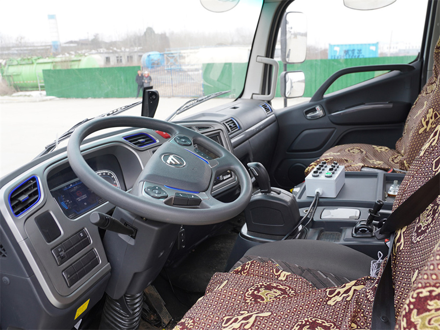 福田12-15噸電動灑水車該車主要用于城鄉園林綠化,路面噴灑;主要裝置為罐體及噴灑裝置.罐體總容量:10.6立方米;罐體有效容積10.1立方米;介質:丙酮水溶液,密度950千克/立方米,罐體外形尺寸(長×長軸×短軸)(mm):4600×2300×1450.側防護采用電池護罩代替,材料為Q235碳鋼,螺栓連接;后防護材料為:Q235碳鋼,連接方式為:螺栓連接,后部防護截面尺寸(mm):120×50,后部防護離地高度(mm):490;ABS型號/生產企業:ABS-E/采埃孚商用車系統(青島)有限公司;電池種類:磷酸鐵鋰電池,儲能裝置單體生產企業:寧德時代新能源科技股份有限公司,儲能裝置總成生產企業:寧德時代新能源科技股份有限公司;電機型號/生產企業:TZ375XSSF-SZF611/陜西法士特齒輪有限責任公司,額定功率:105kW,峰值功率:175kW.選裝前部電子水炮樣式,選裝前部不帶電子水炮,該狀態下車長為8100mm;當前部安裝電子水炮時,車長為8600mm,車輛前伸500mm.后部箭頭指示燈僅在車輛作業時開啟.選裝車輛前部鴨嘴裝置.選裝噴灑裝置樣式.選裝管道口位置.選裝側防護裝置樣式,側防護材料為鋁合金+Q235碳鋼,連接方式為螺栓連接.